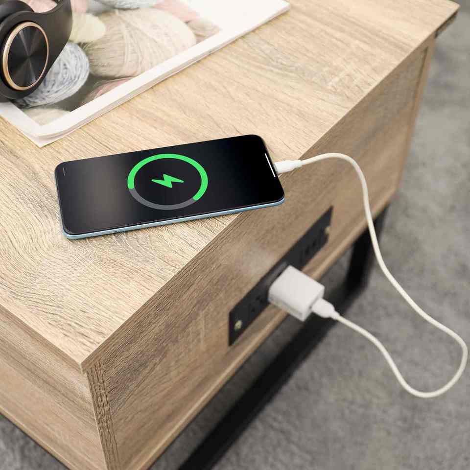 【SMART CHARGING TABLE】 Thoughtfully equipped with 2 three-pronged ports and 2 USB charging ports on the side.